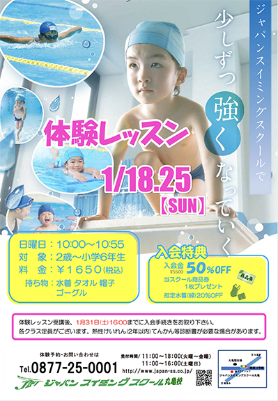 ジャパンスイミングスクールでは、1日体験教室を受付中です!